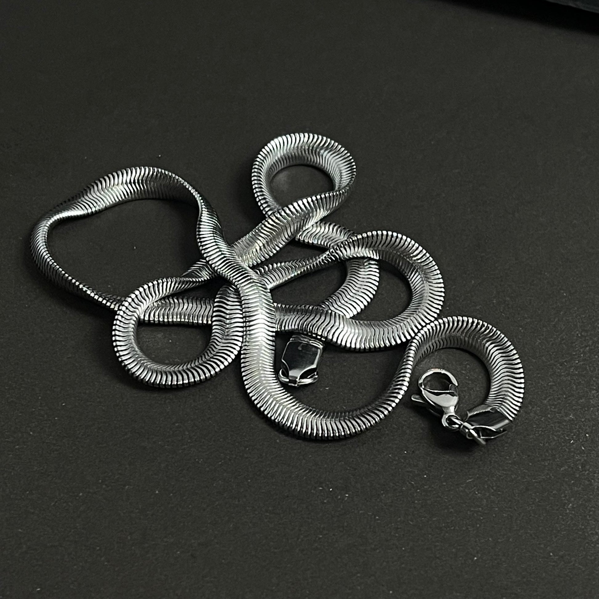 - This silver 5mm very light weight snake chain by dappershop.pk available online across Pakistan. this necklace looks perfect by itself or with a pendant. The simplistic Italian design looks stunning with formal and casual outfits. This necklace also works as a great replacement for broken silver chain necklaces. The 5mm width suits perfectly for men who look for a delicate and timeless silver chain necklace. The chain is made of stainless steel, that is durable, water-resistant, anti-allergic, and doesn't lose its color. It can be worn on any occasion, every day. It is also easy to combine with other jewelry and clothing.