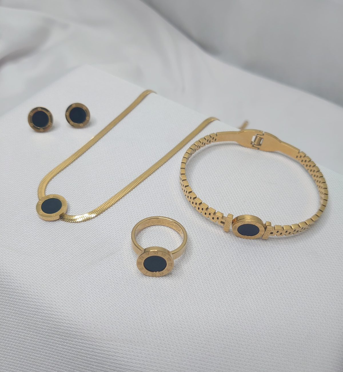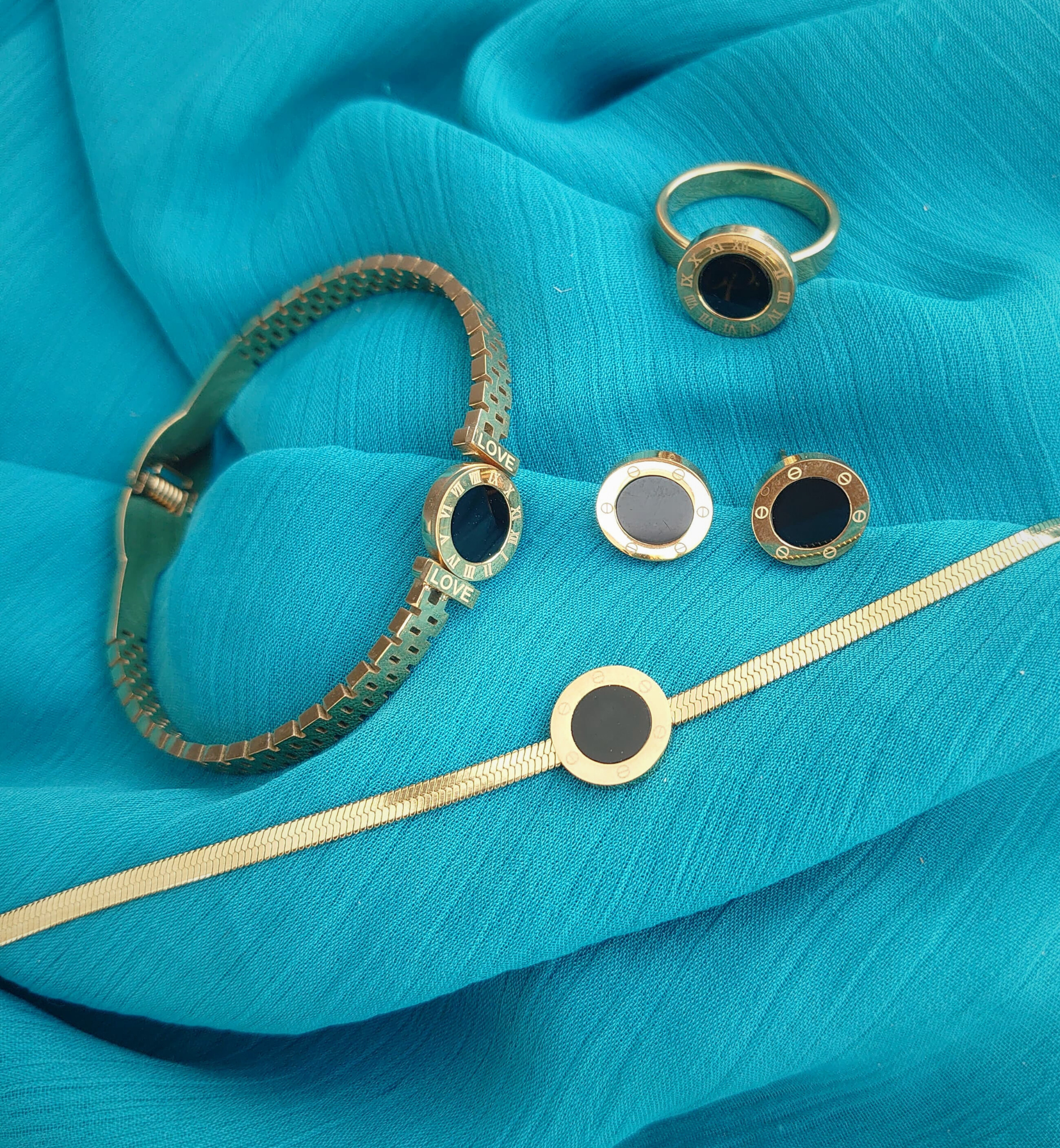Hamari collection mein shamil hain finest 316L stainless steel ke nazuk aur be-misaal tukde, jo advanced PVD plating ke saath har din ki chamak aur durability ko yaqini banate hain.